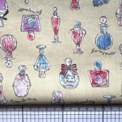 香水ボトル柄 プリント綿生地 シーチング グレージュ