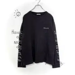 BAYFLOW カットソートレーナー(L)刺繍ライン ブラック コットン