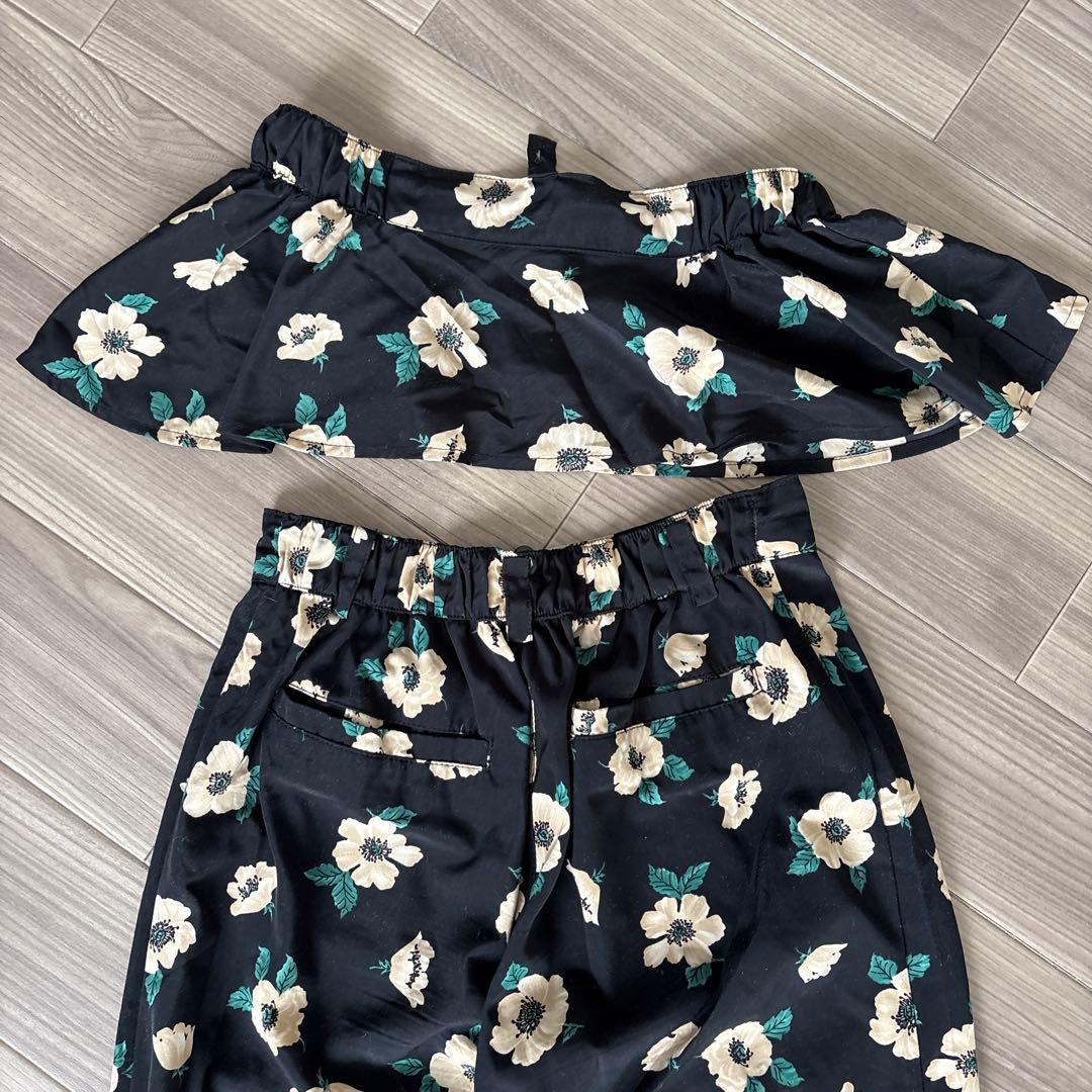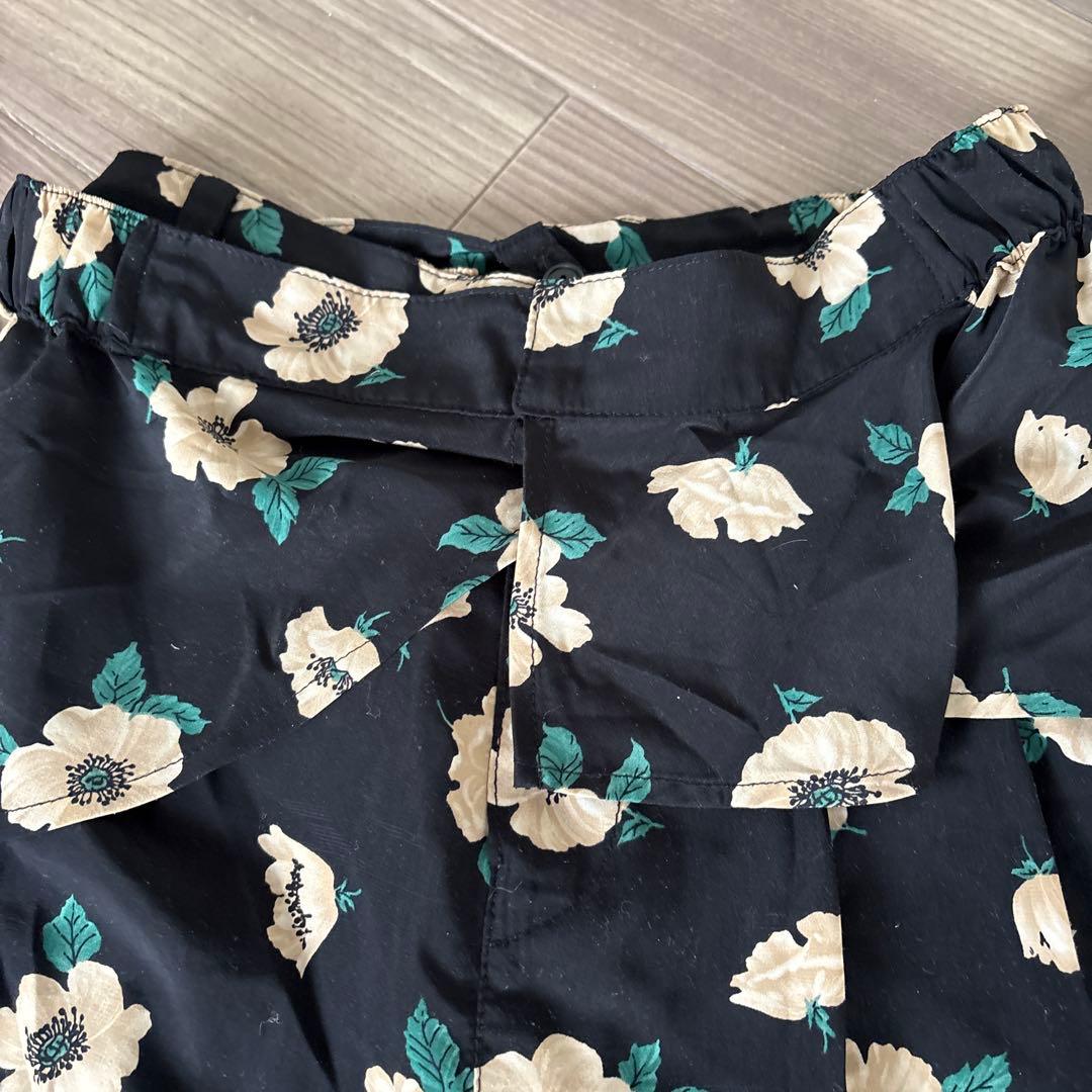 【HIAND】2way 取り外し可能ペプラム!花柄パンツ (黒)