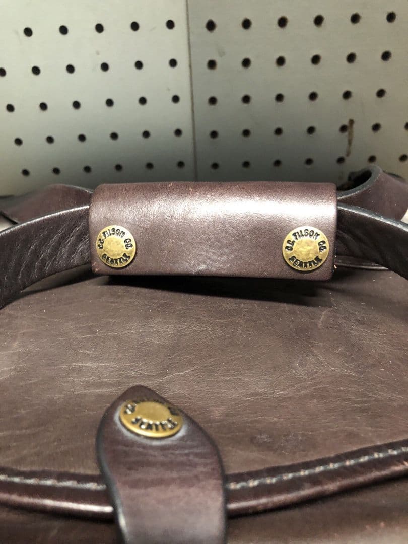 フィルソンウェザープルーフレザーラギットダッフルバック、シエラブラウンーレア