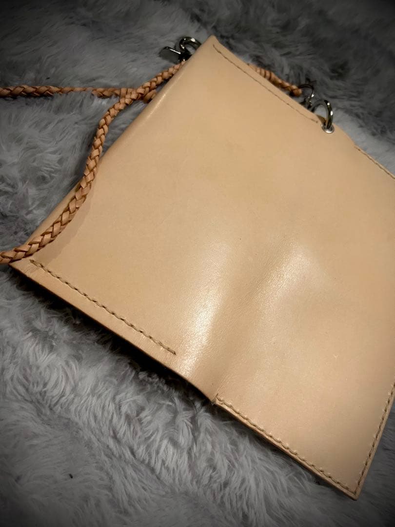 長財布 ヌメ革 本革 ベルトチェーン レザーチェーン