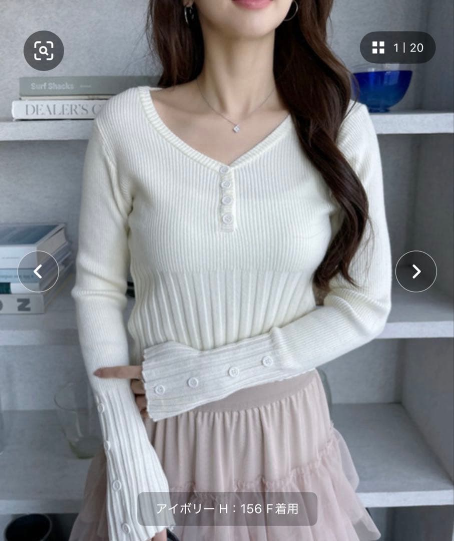 Ada. ウエストデザイン Vネック リブニット トップス