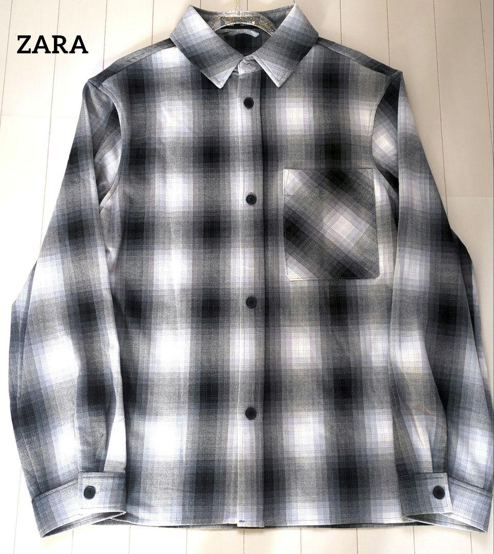 ZARA グレー系チェック 長袖 オンブレ ネルシャツ