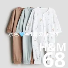 【新品未使用】H&M 長袖ボディースーツ 5枚 ロンパ グリーン カーキ 70