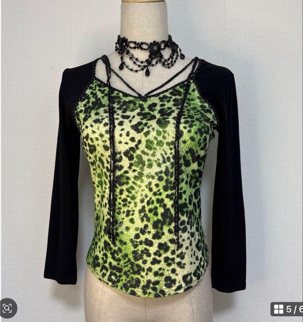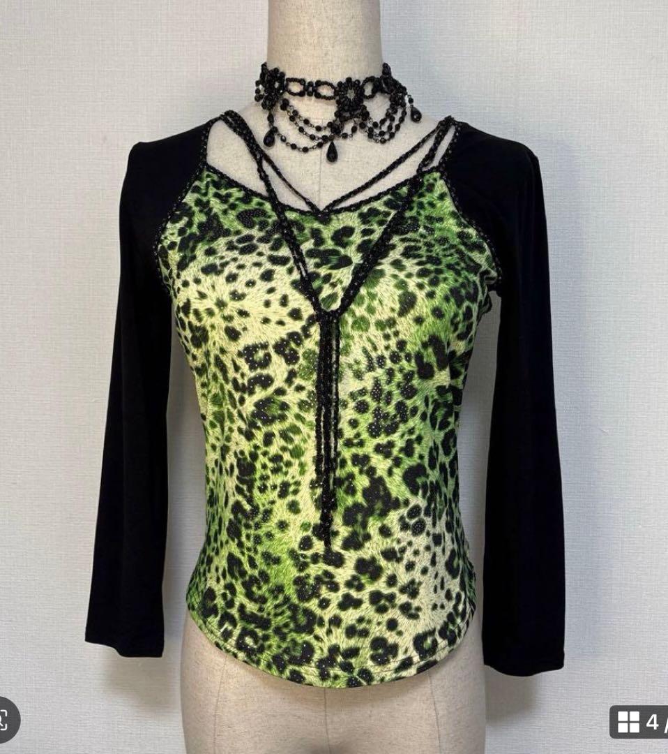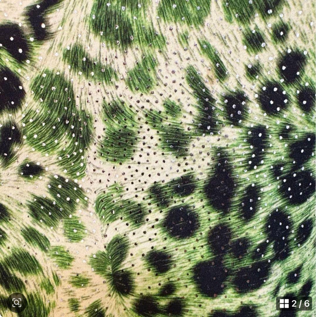社交ダンスレッスンウェア 斉藤ファッションズ キラキラ緑レオパード柄