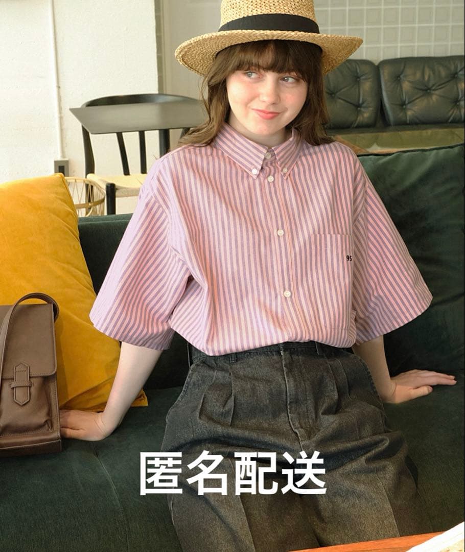 ビッグアソートナンバリング刺繍ボタンダウン半袖シャツ ピンク