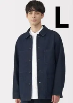 無印良品 木の実から作ったカポック混デニム カバーオール L ダークネイビー
