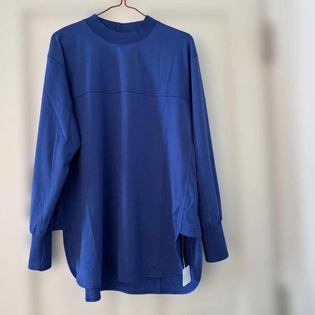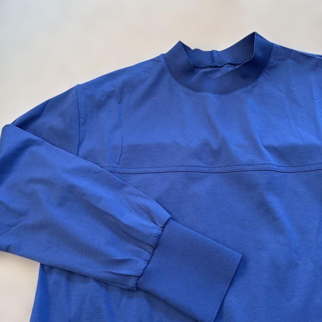 元町ぜラール、ギザコットン混ロイヤルブルー長袖チュニックプルオーバーサイズL