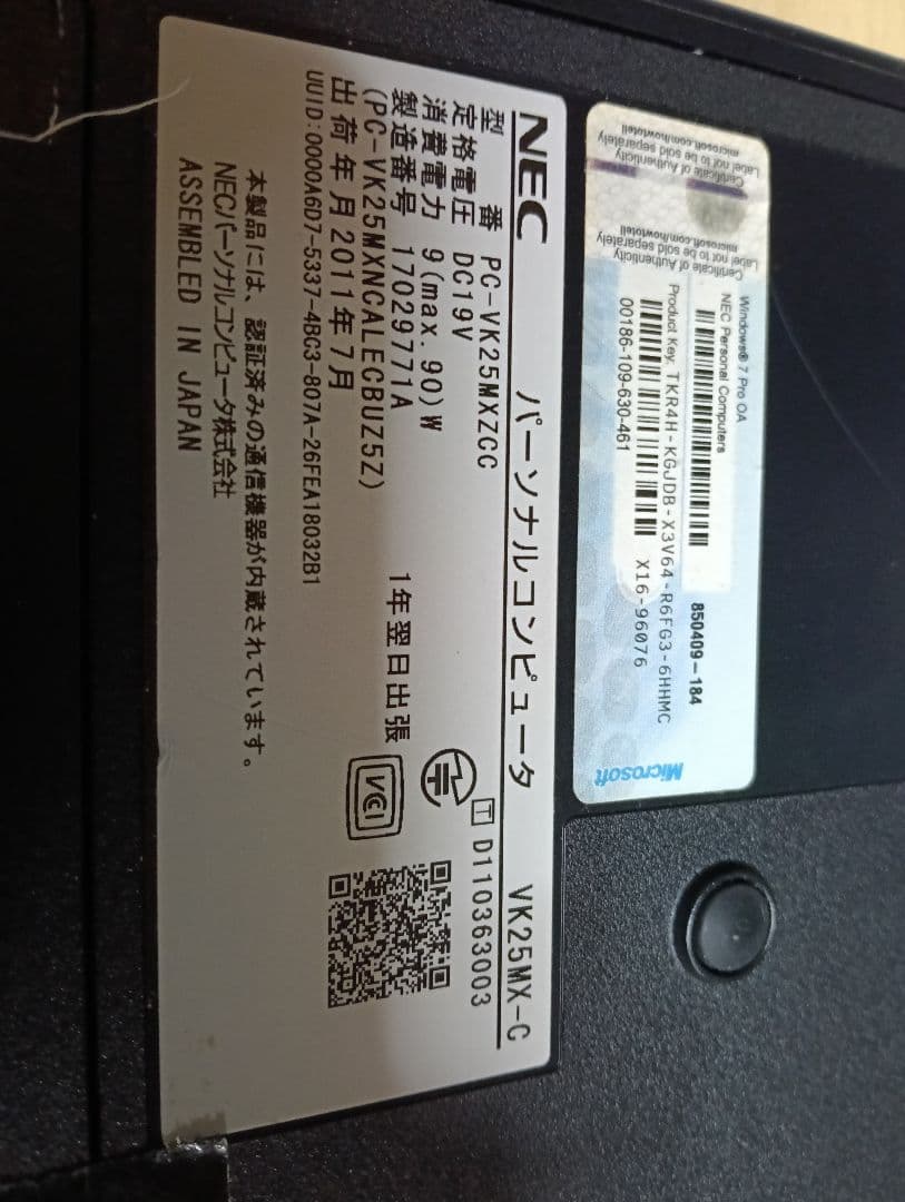 ジャンク パソコンをいじれる人のみ購入可 NEC VersaPro ノートPC