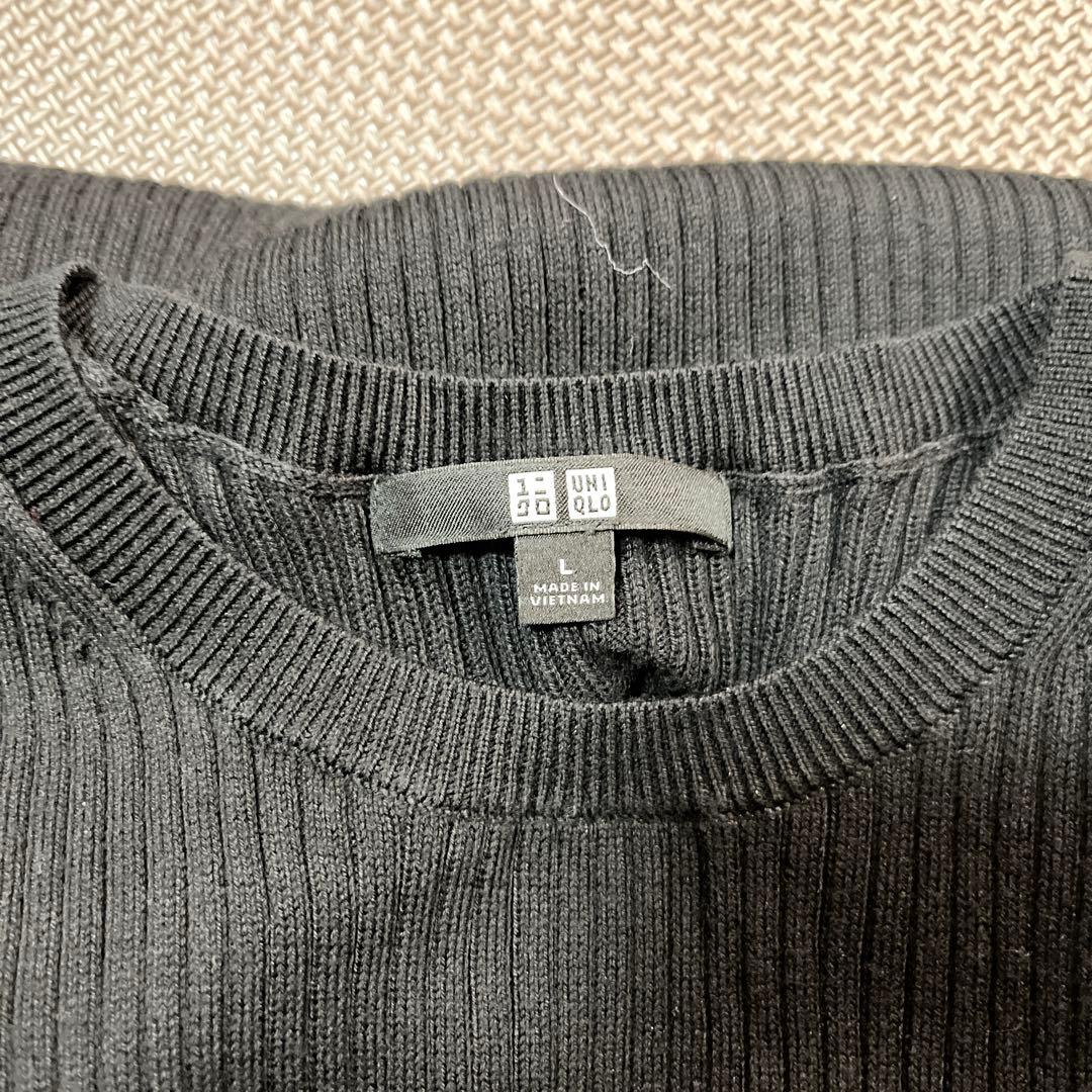 UNIQLO リブ編み ノースリーブワンピース L 黒