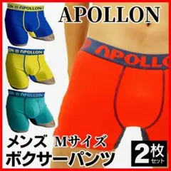 APOLLON メンズボクサーパンツ2枚セット Mサイズ ブルー×イエロー