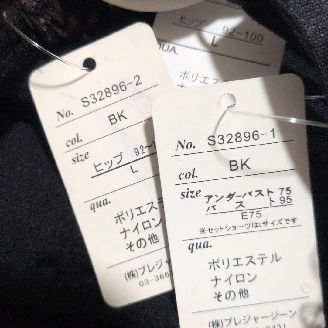 PUG 黒ヒョウ柄ブラジャー・ショーツ・Tバック3点セット ビジュー付き ギャル