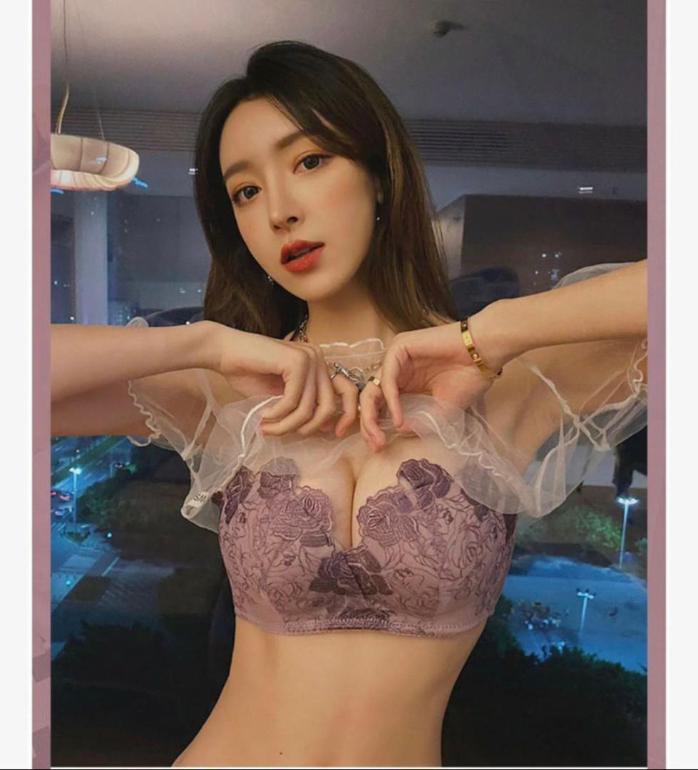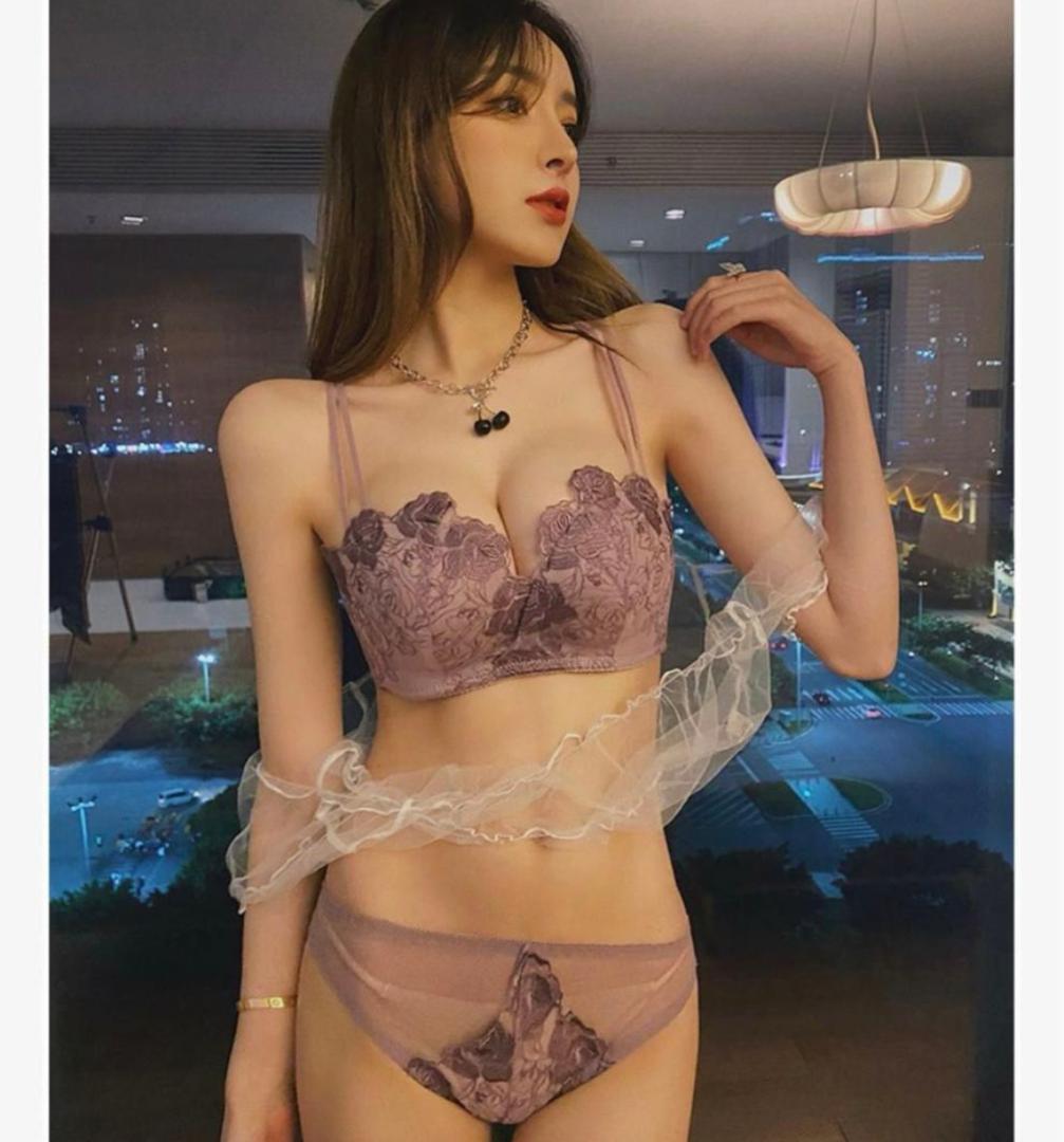 ブラジャーショーツセット 脇スッキリ ノンワイヤー 韓国 M パープル 盛れる