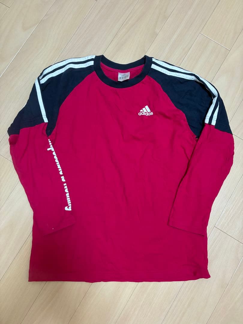 adidas 赤黒 ラグランスリーブ 長袖カットソー