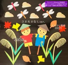 秋空壁面 カカシ ススキ トンボ 落ち葉9月10月11月保育士保育園幼稚園施設