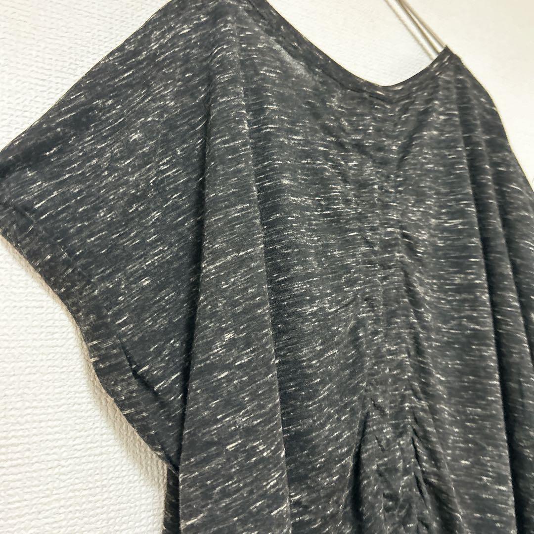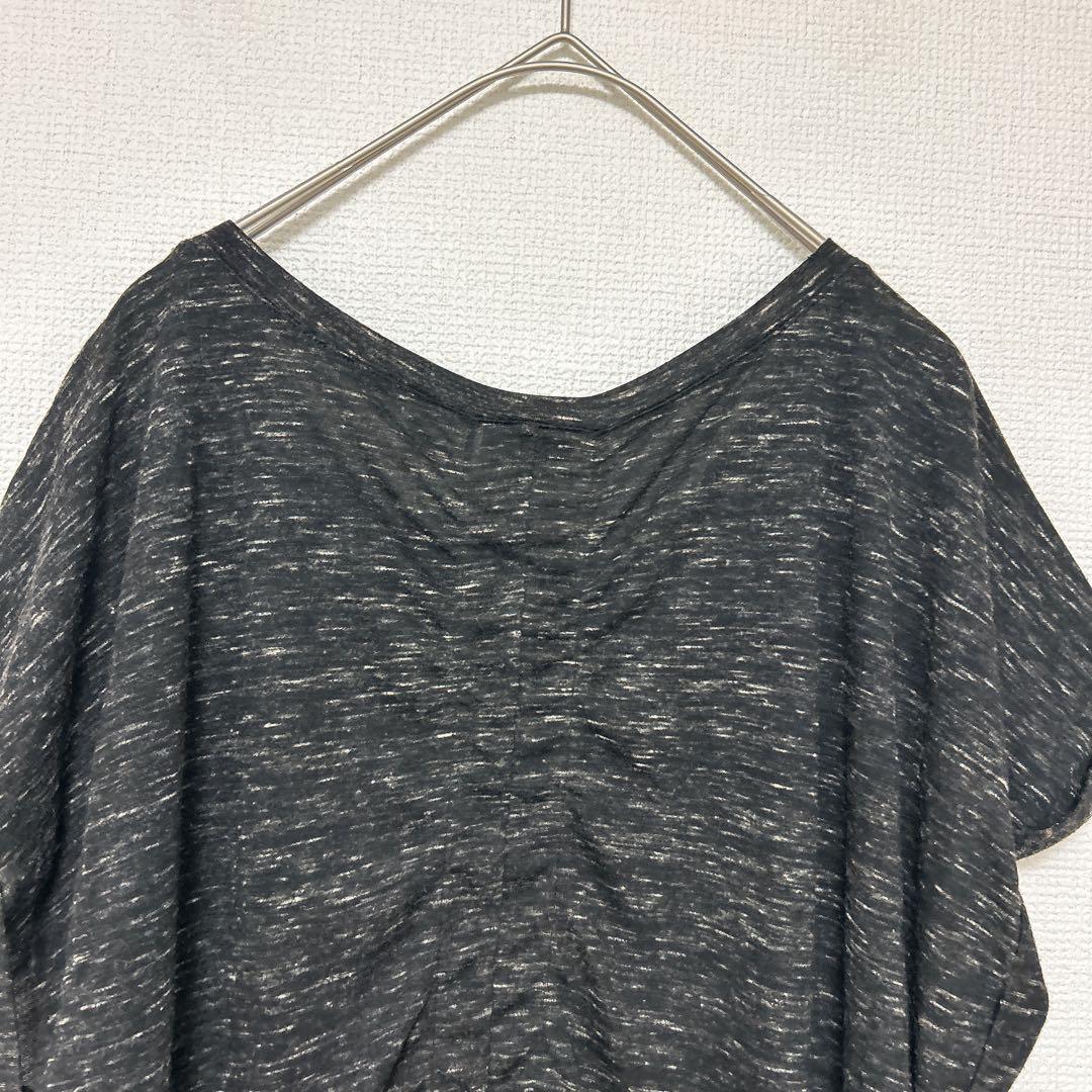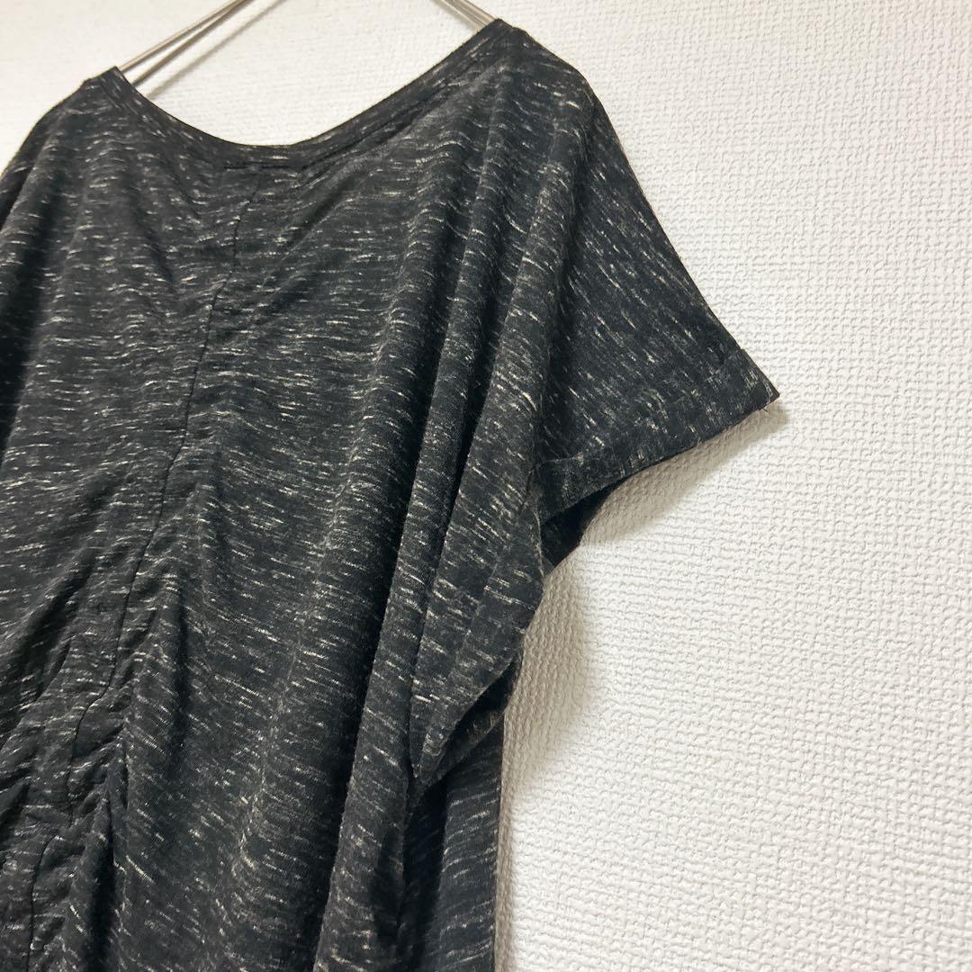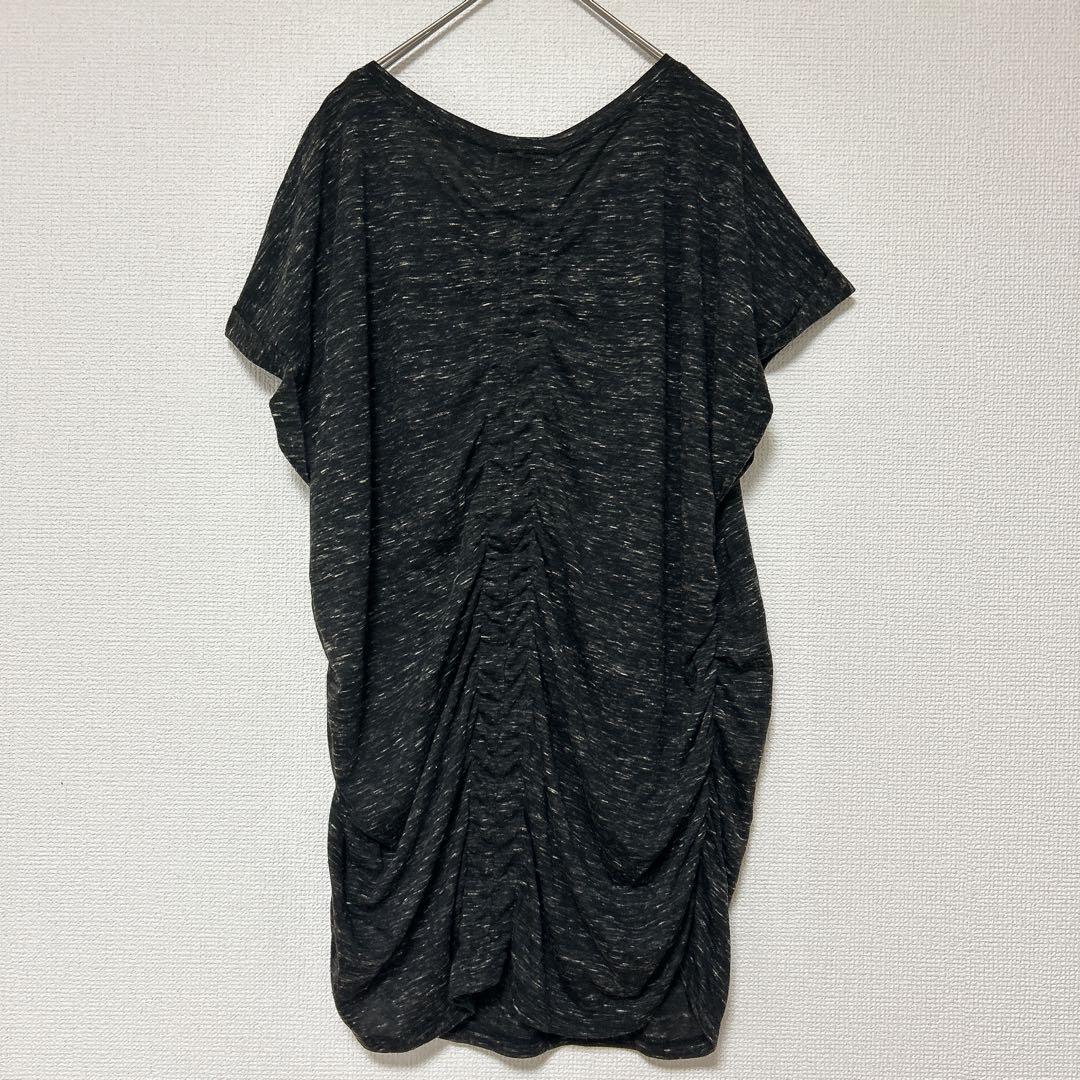 レア✨CATO XL 半袖チュニック サイドギャザー 黒 クルーネック ビジュー
