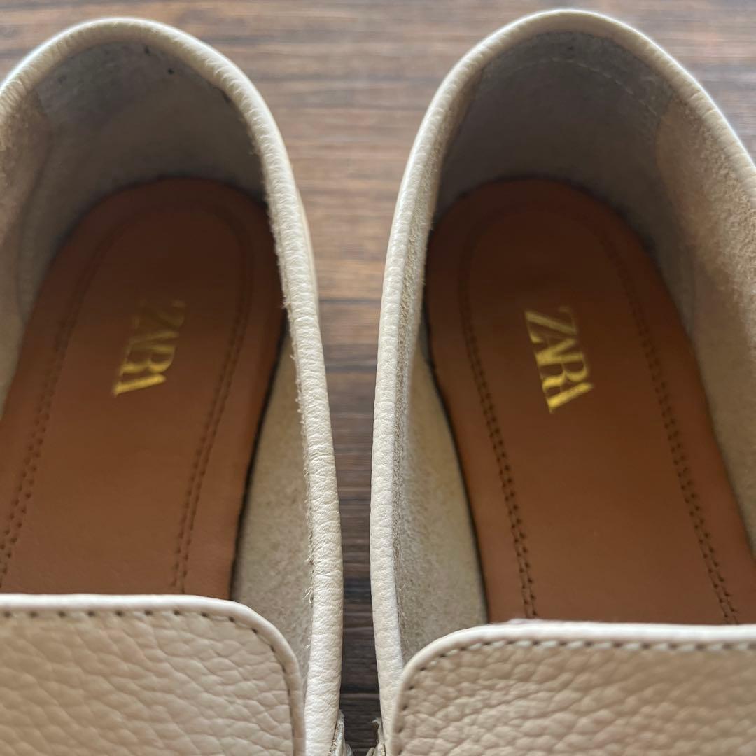 ZARA アイボリー レザー ローファー