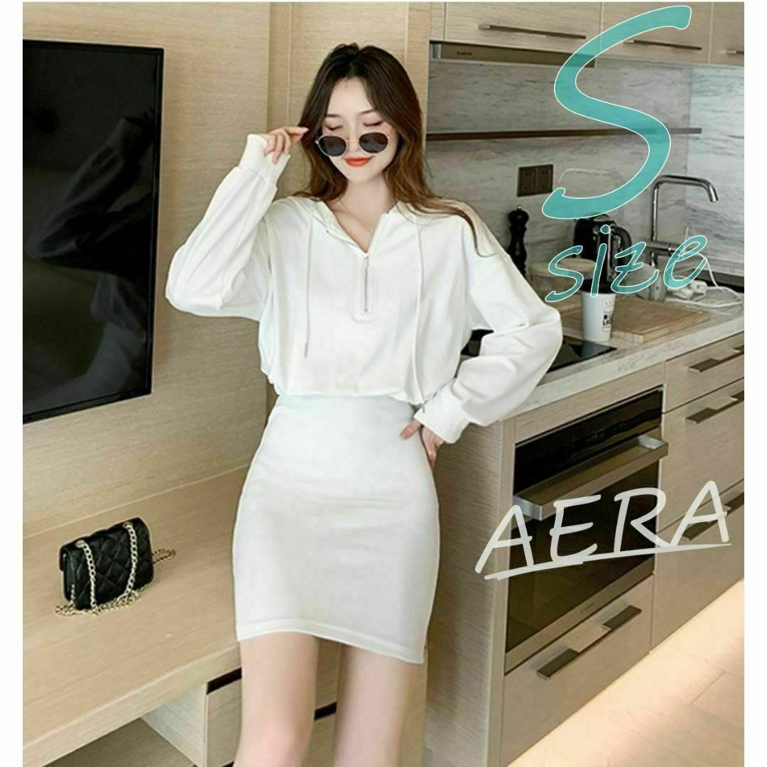 ワンピース パーカー スウェットミニスカート 白 ルームウェア S