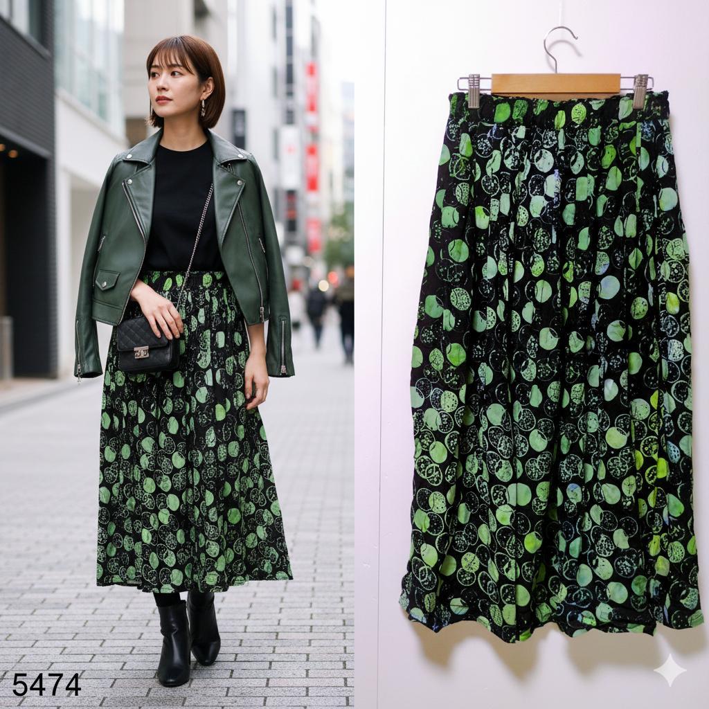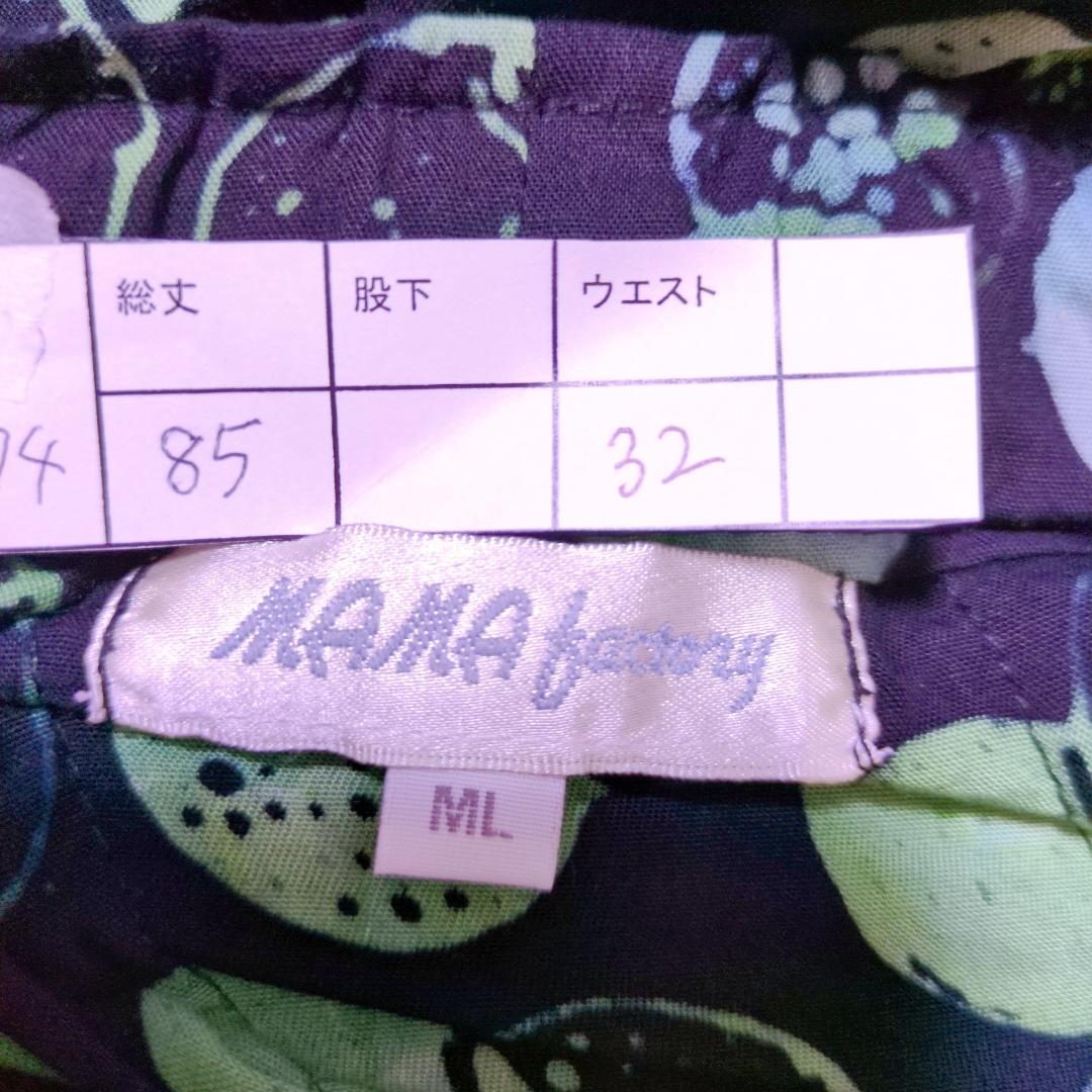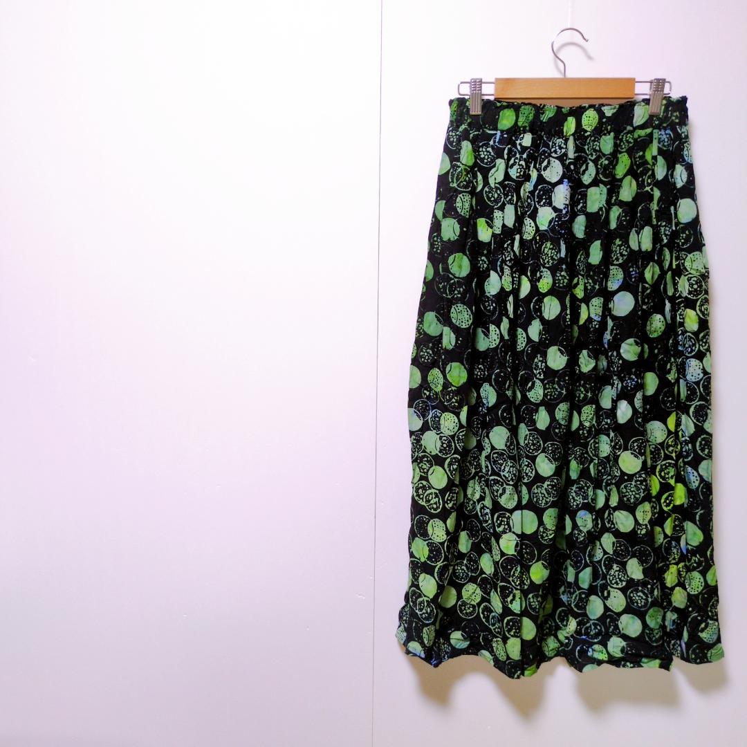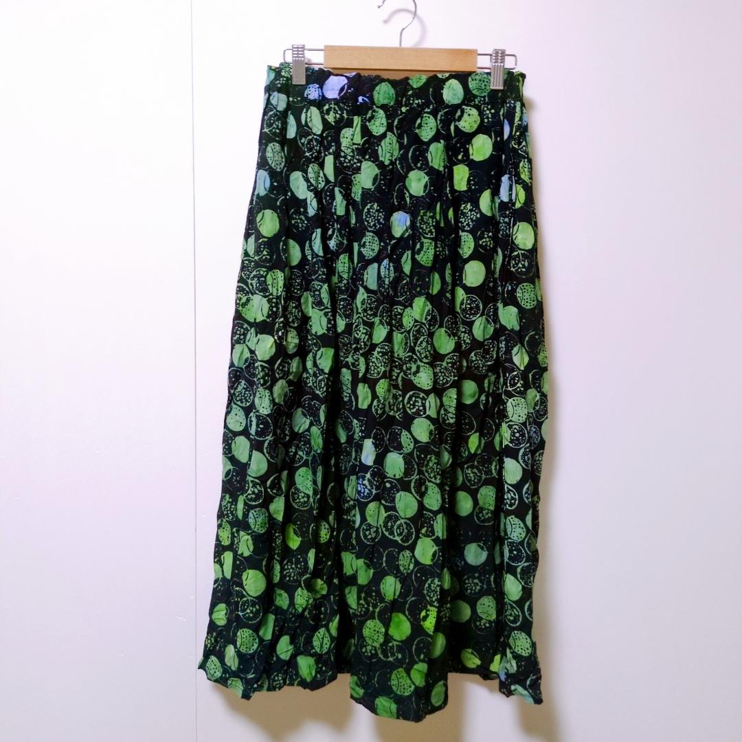 ママファクトリー 総柄ロングスカート MLサイズ グリーン系プリント 美品