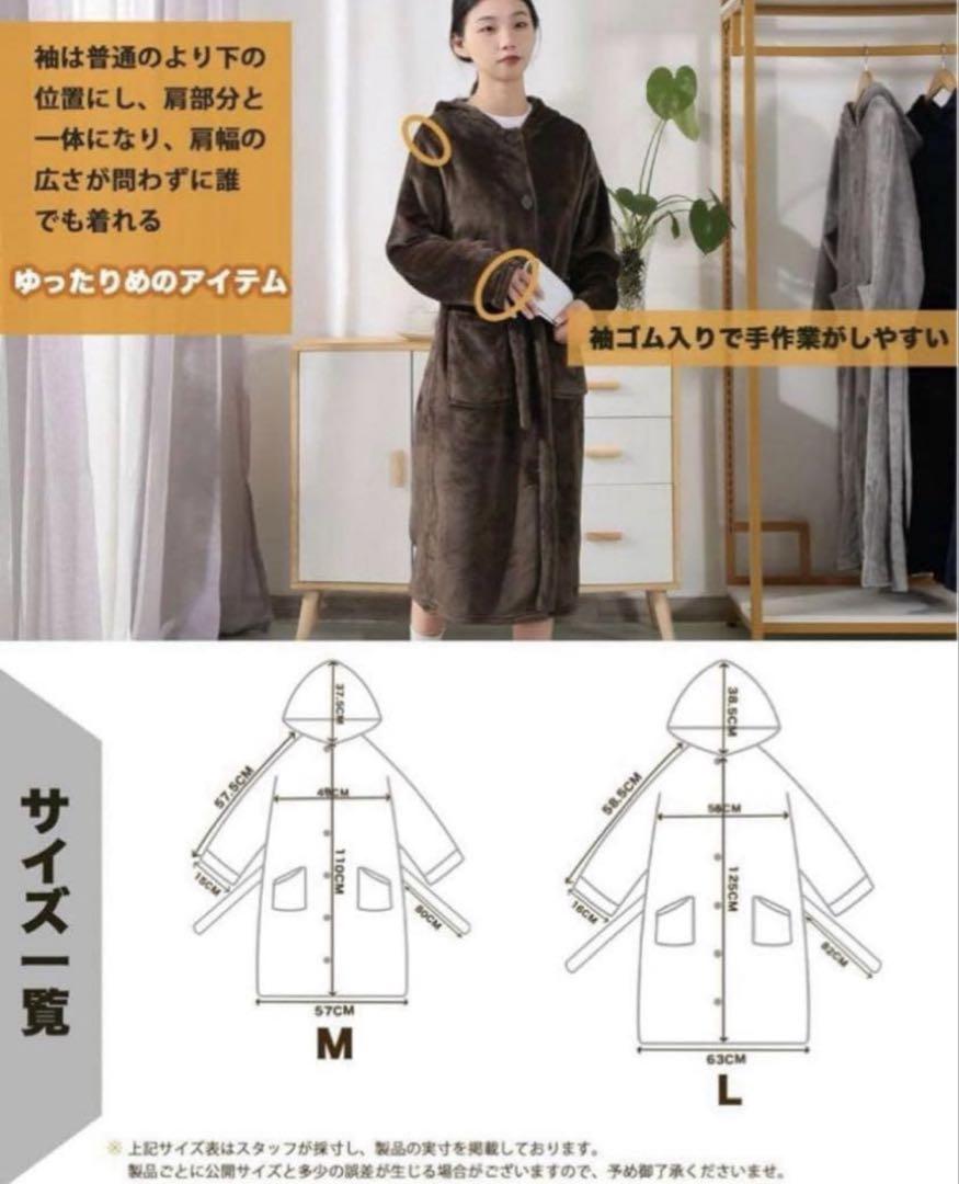 着る毛布 冬 保温 極上の触り 吸湿発熱 男女兼用 フード付き ガウン 1枚 M