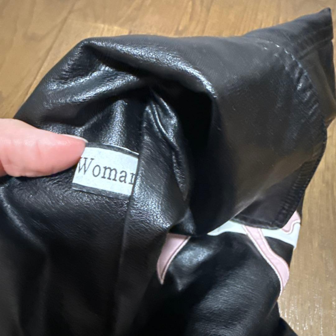リボン付き黒レザージャケット