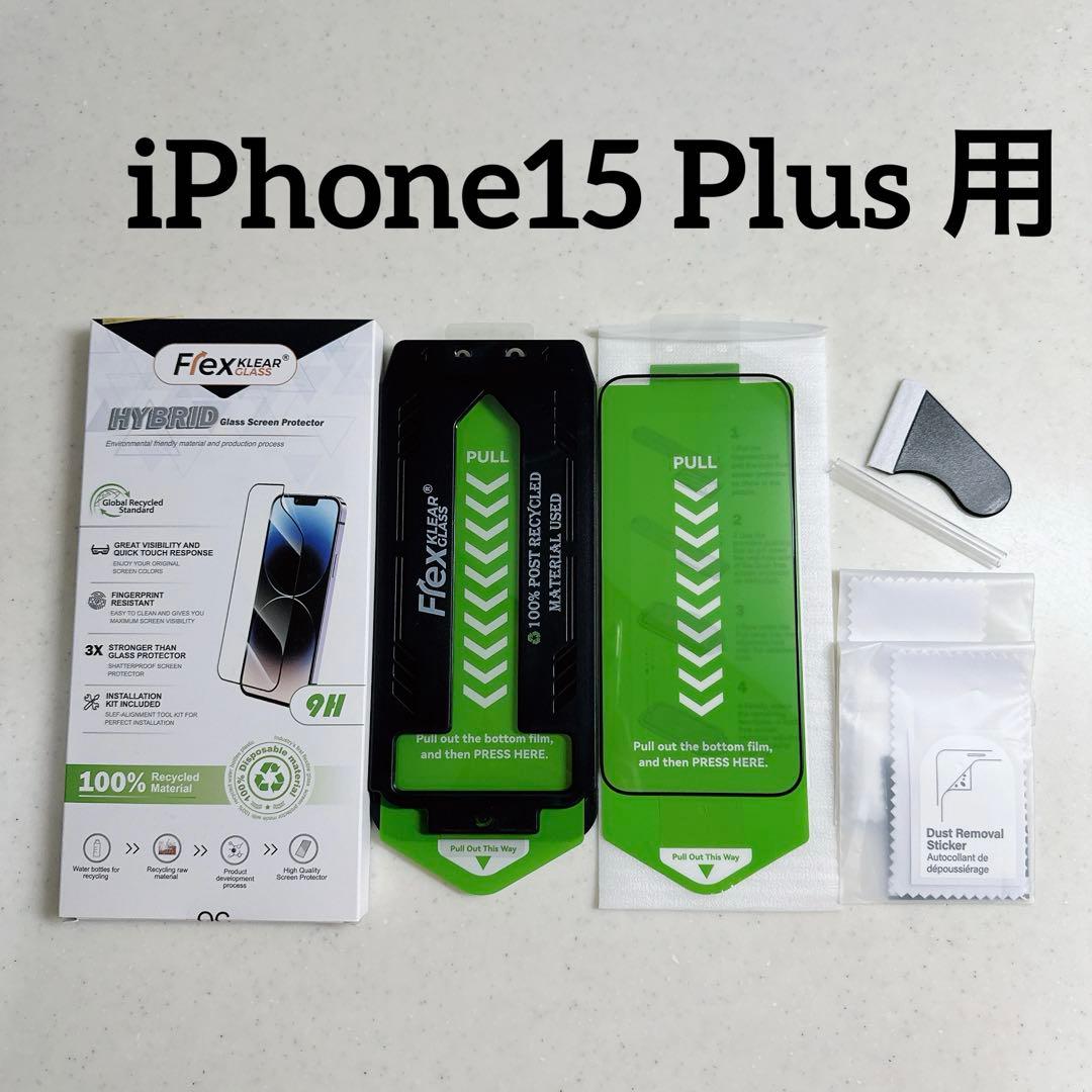 iPhone15 Plus 用 ソフトガラス膜フィルム 2枚 ガイド枠付き
