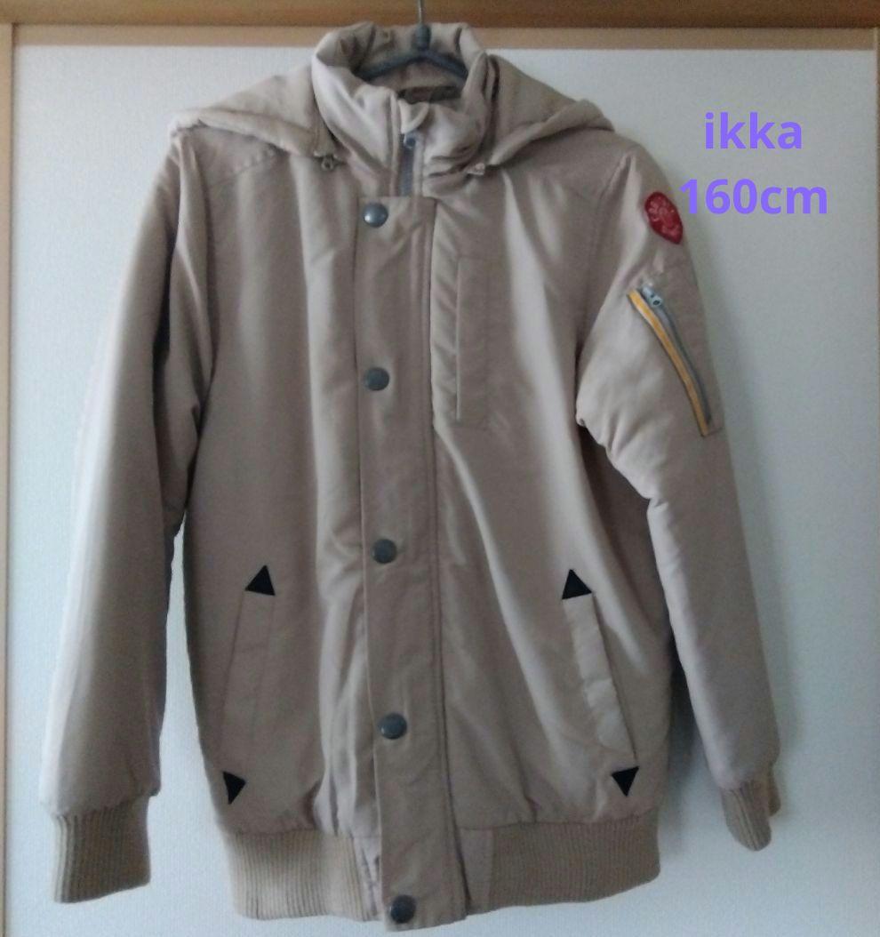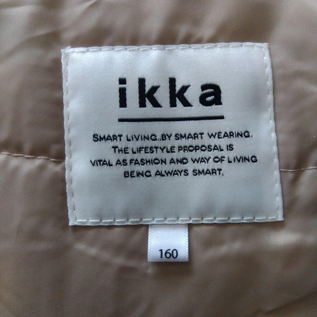 【ikka イッカ】美品 ベージュ中綿コート フード付き160cm