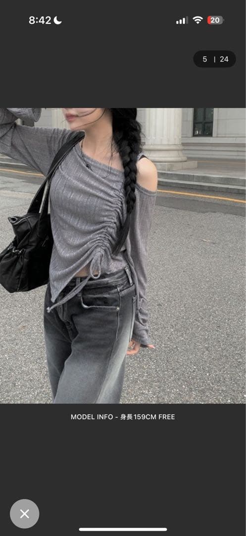 む*む様 anyonemore ワンオフショルダーギャザーリボン長袖Tシャツ