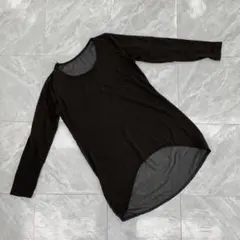 ブラック ロング丈カットソー ラウンドネック 長袖 アシンメトリー裾 シンプル