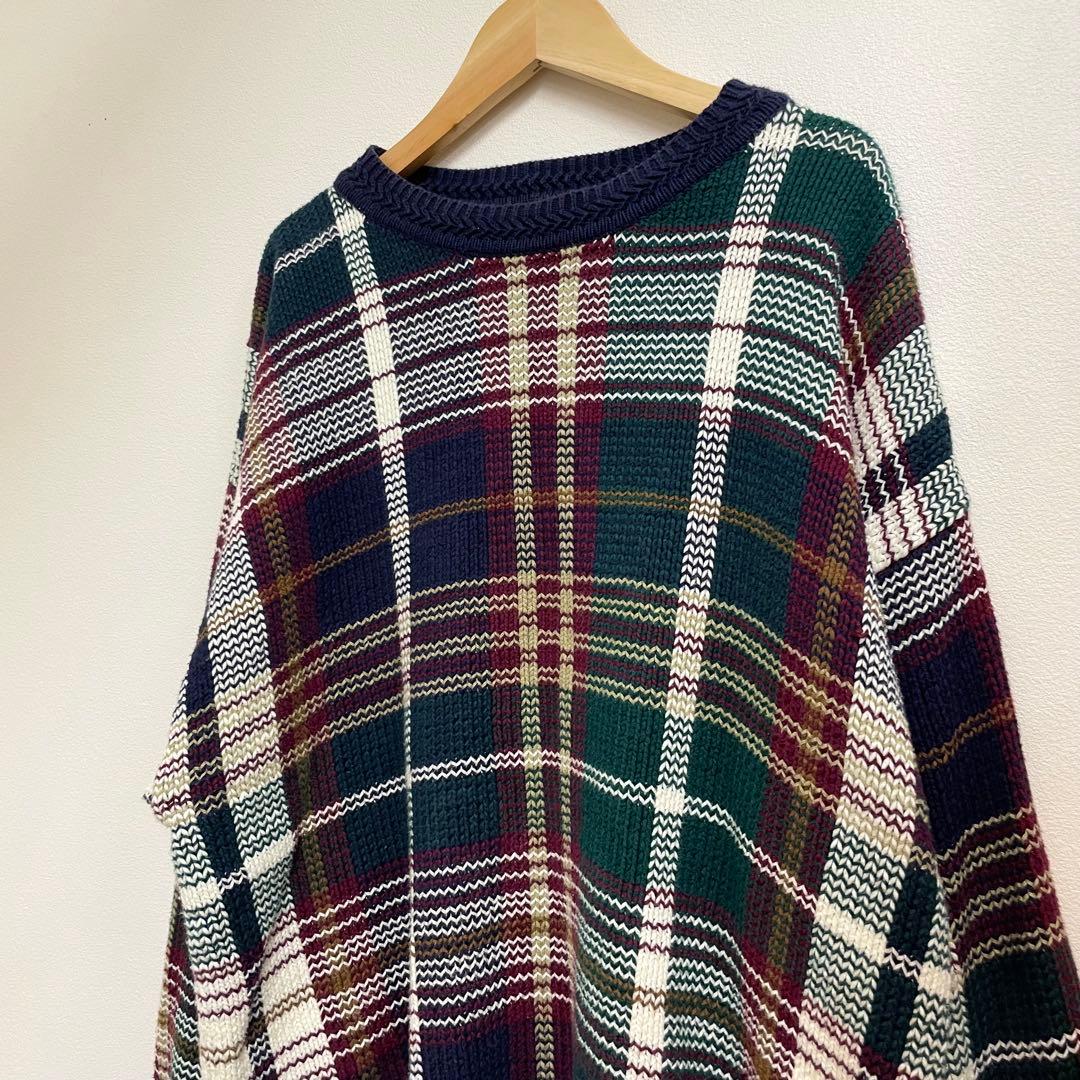 90s Preswick & Moore コットンニット チェック 総柄 L