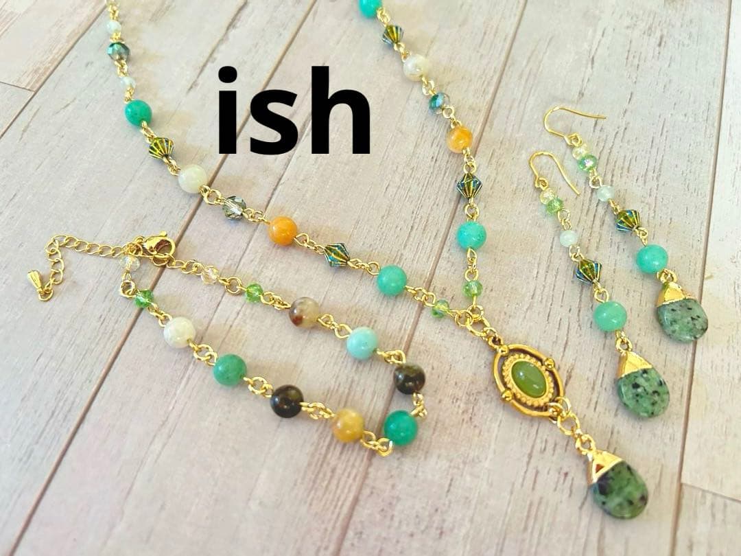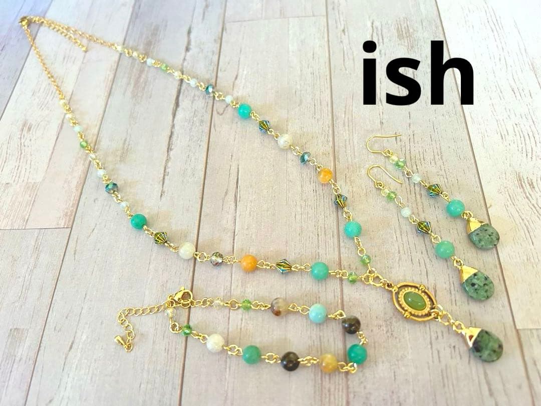 【A096】ishルビーインゾイサイト・アマゾナイトネックレス&ブレス&ピアス
