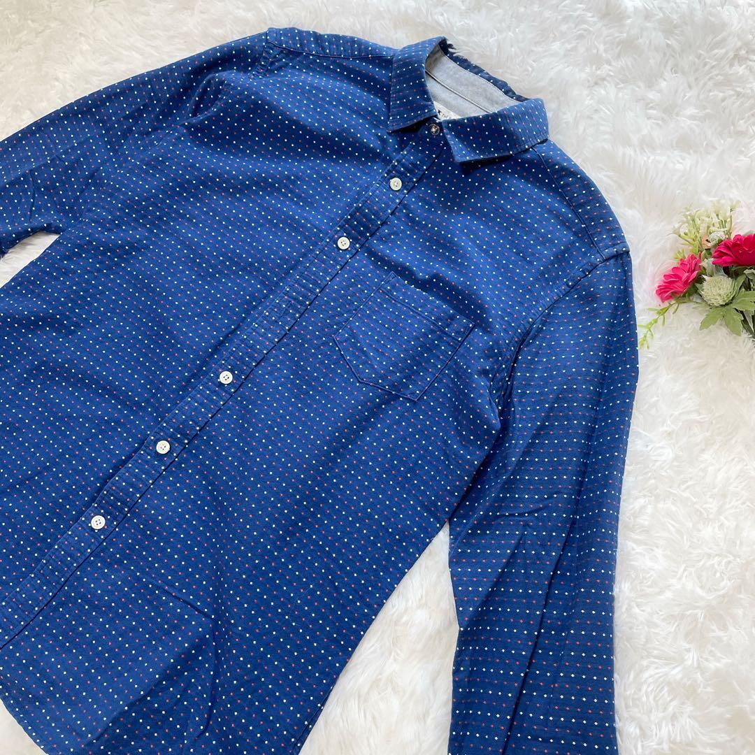 ザショップティーケー【L】ネイビー ドット柄 長袖シャツ ドレスシャツ 個性的