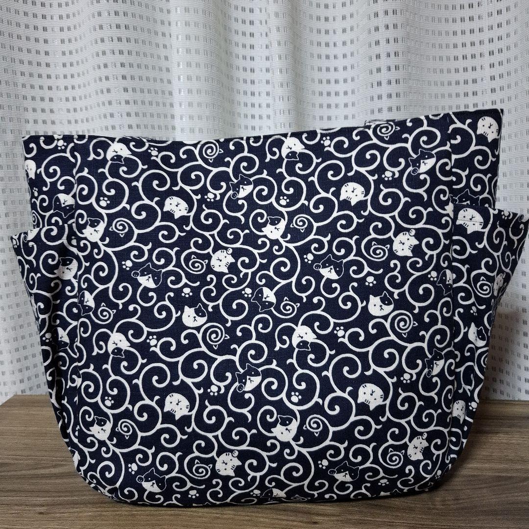 猫 唐草模様 和柄 特大チューリップバック(濃紺)