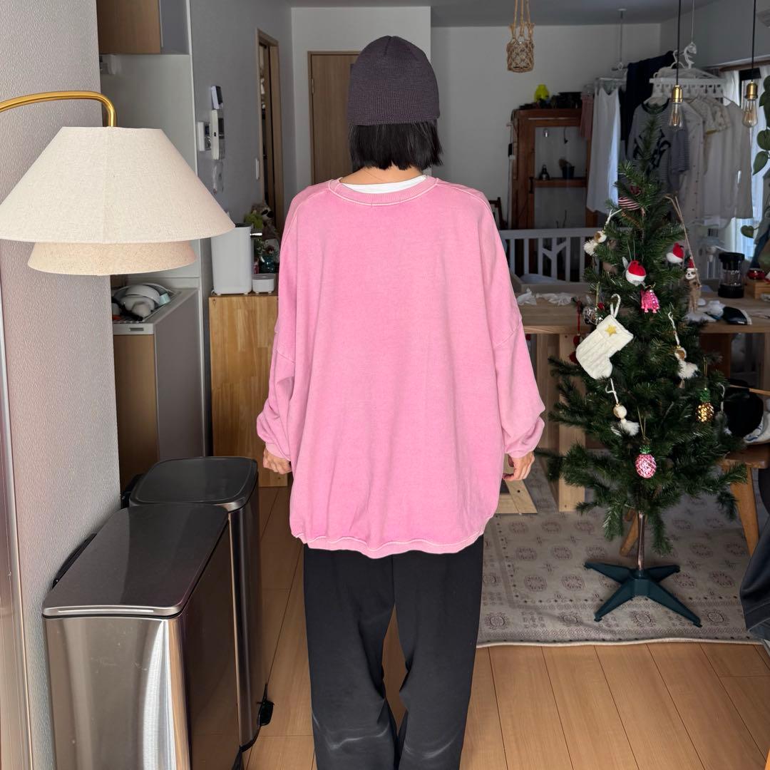 【Flugge】無地 ピンク 長袖 トレーナー スウェット 男女兼用