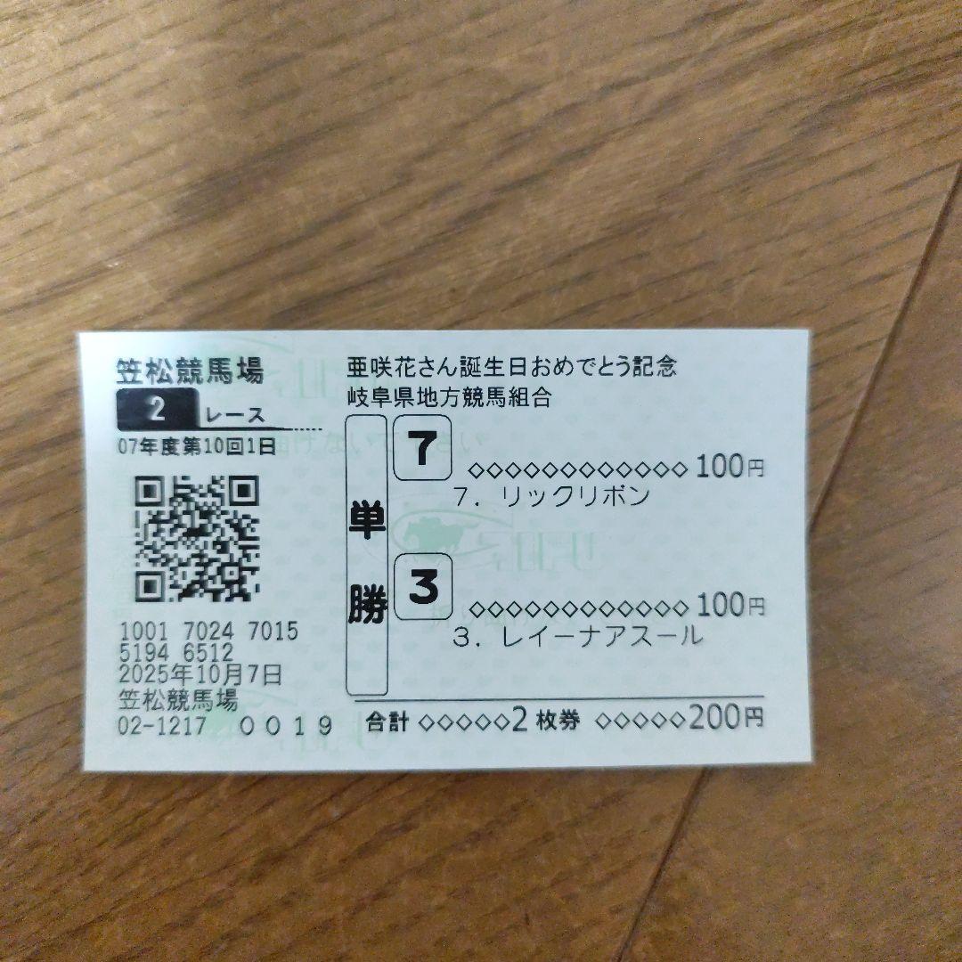 笠松競馬場 亜咲花さん誕生日おめでとう記念賞外れ馬券