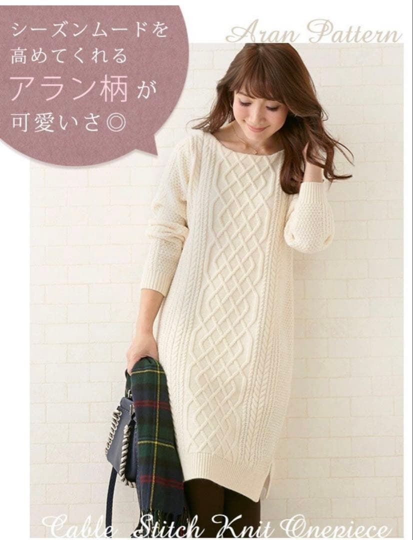 Liala×PG アラン柄 ウール ニットワンピース ホワイト 美品