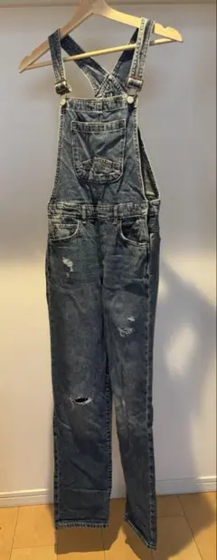 ライトブルー ダメージデニムオーバーオール 100cm以上