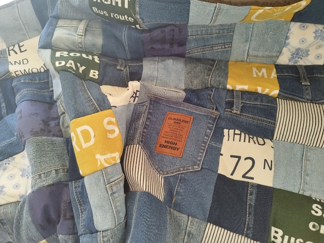 No.1307ハンドメイド★ブランケット★デニムリメイク★パッチワーク
