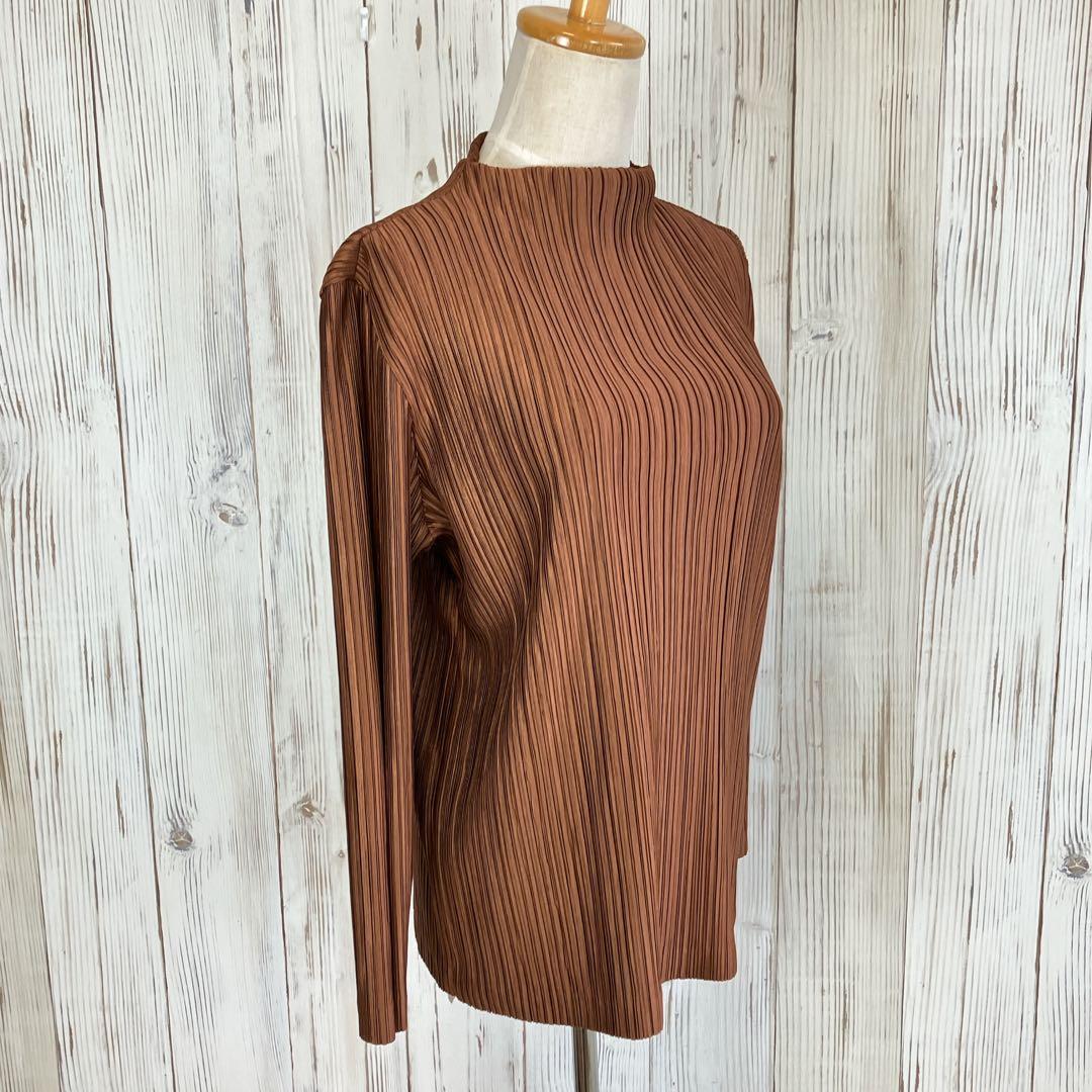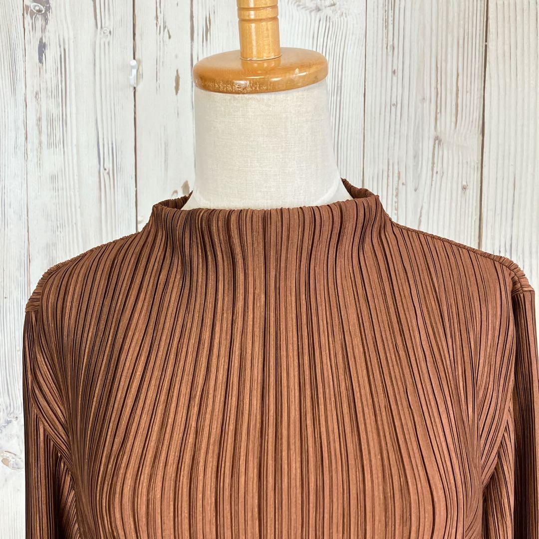 Tabi international * プリーツ加工 カットソー ツヤ感 茶