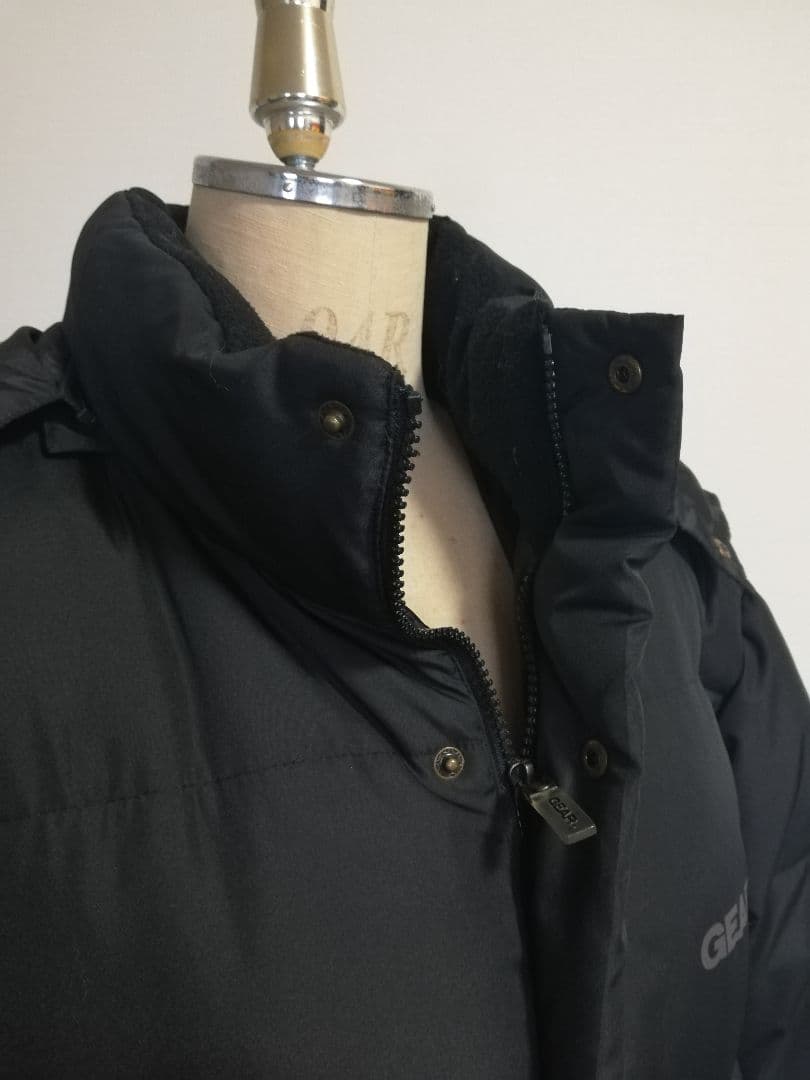 フード付きブラックロングダウンコート