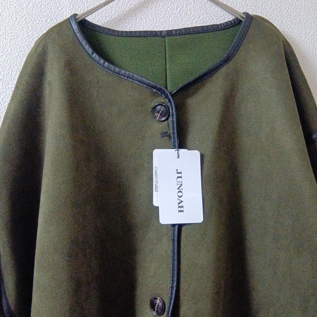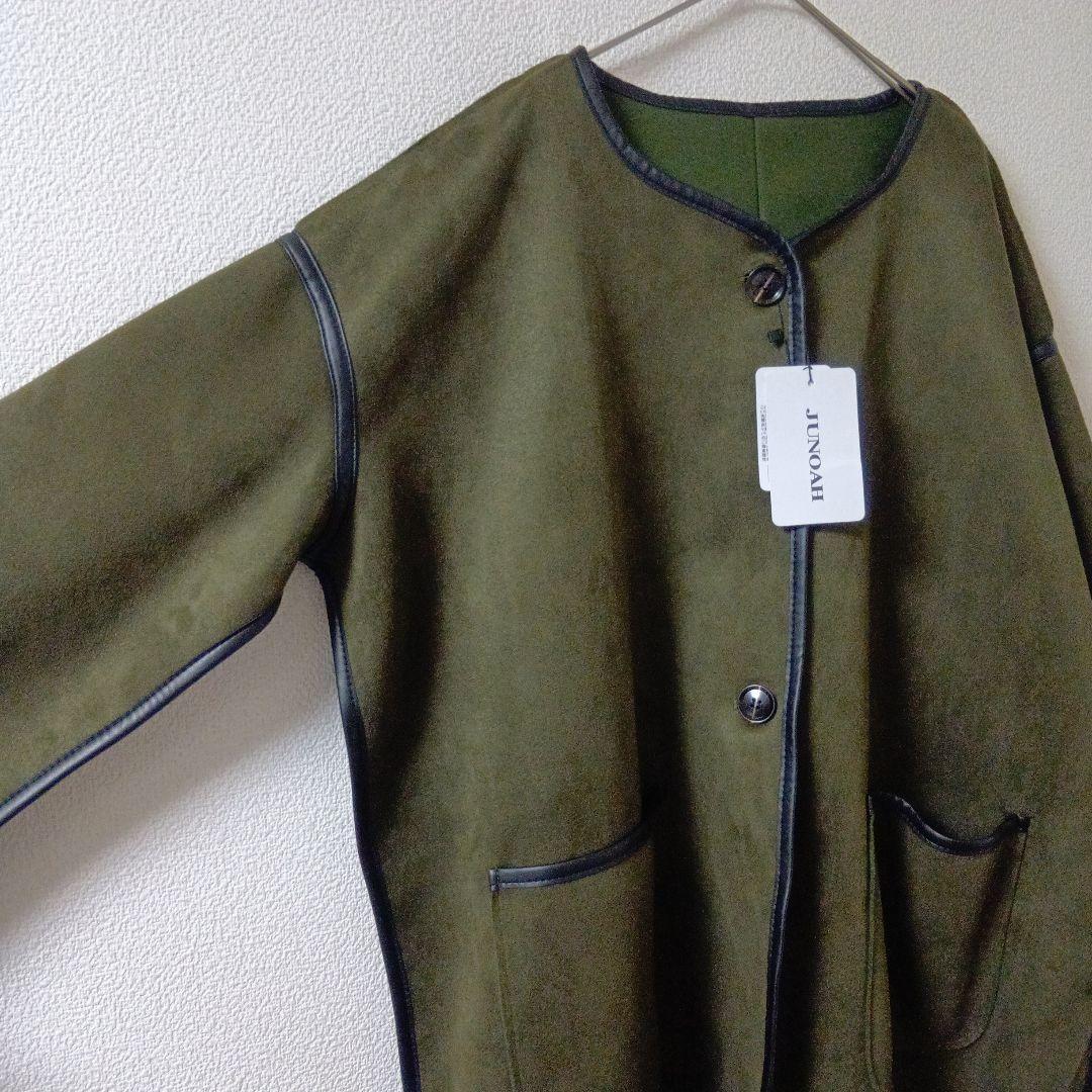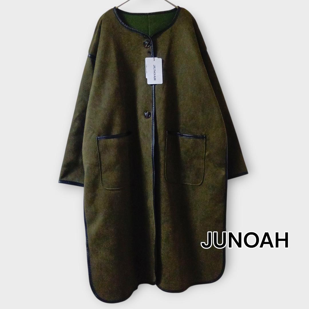 タグ付き/JUNOAHムートンパイピングノーカラーコート