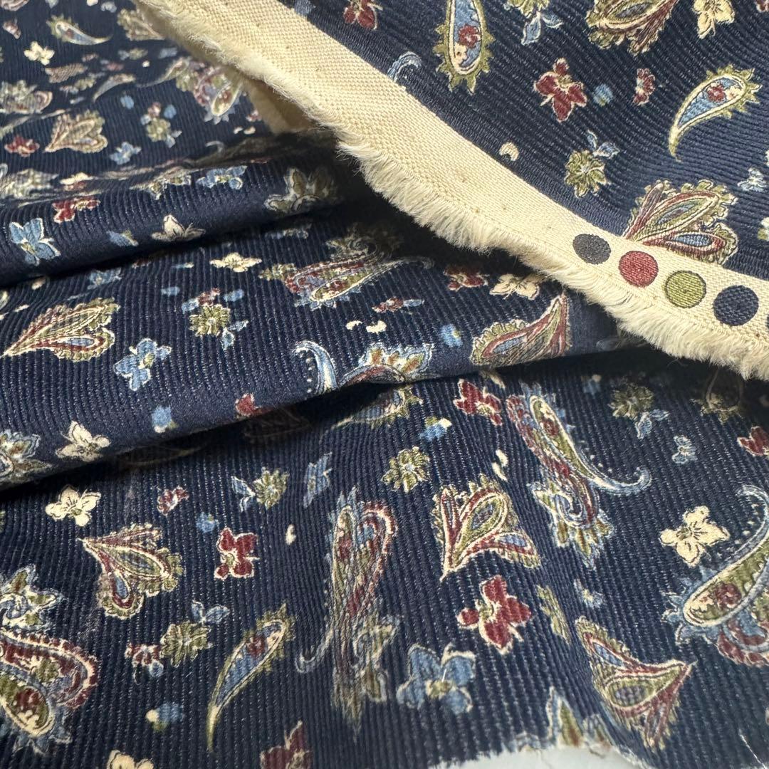 2M国産コットンシャツコールペイズリーコーデュロイネイビー濃紺生地布地
