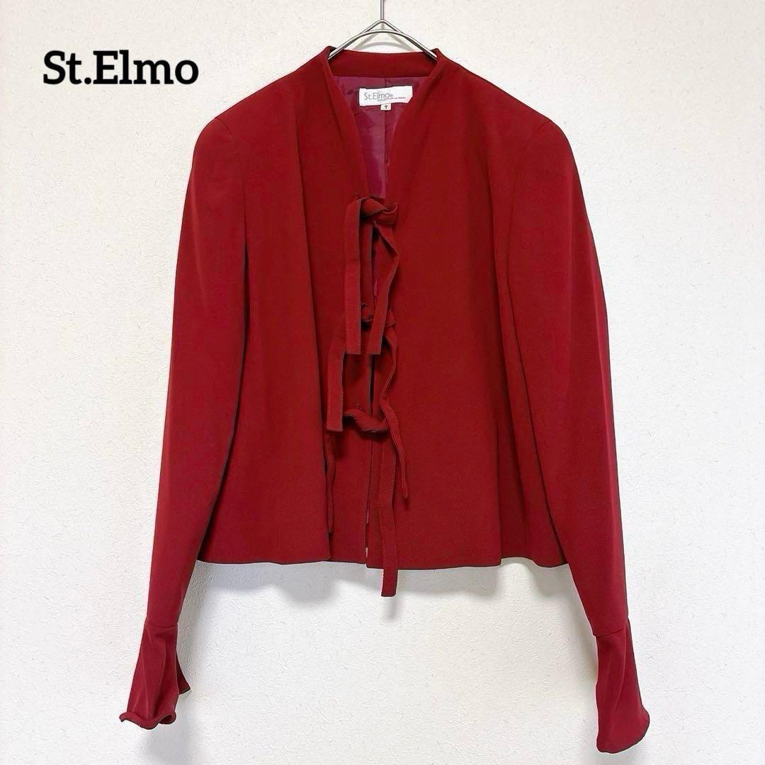 【セントエルモ】 ジャケット風 カーディガン 7号赤系 ポリエステル100%