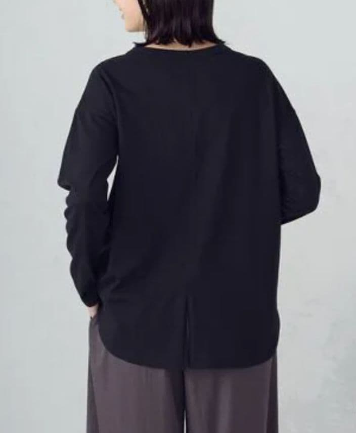 新品COMME CA ISMコムサイズム黒裾スリット ロングTシャツチュニックL