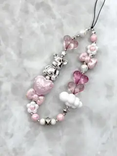 [K673] ビーズキーホルダー ビーズストラップ バッグチャーム 星 パープル