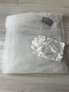 ホワイトウェディンググローブとベールセット