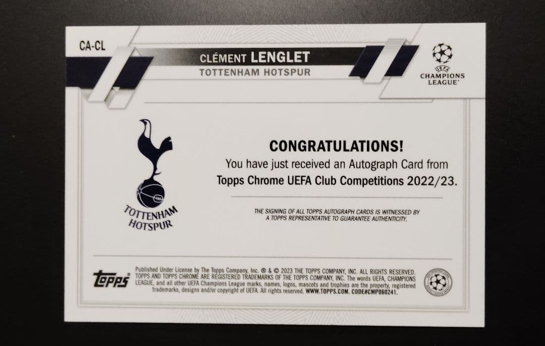 topps クレマン・ラングレ 直筆サイン auto TOTTENHAM CL