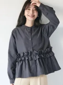 【タグ付き】coca Mサイズ ホイップフリルブラウス チャコール