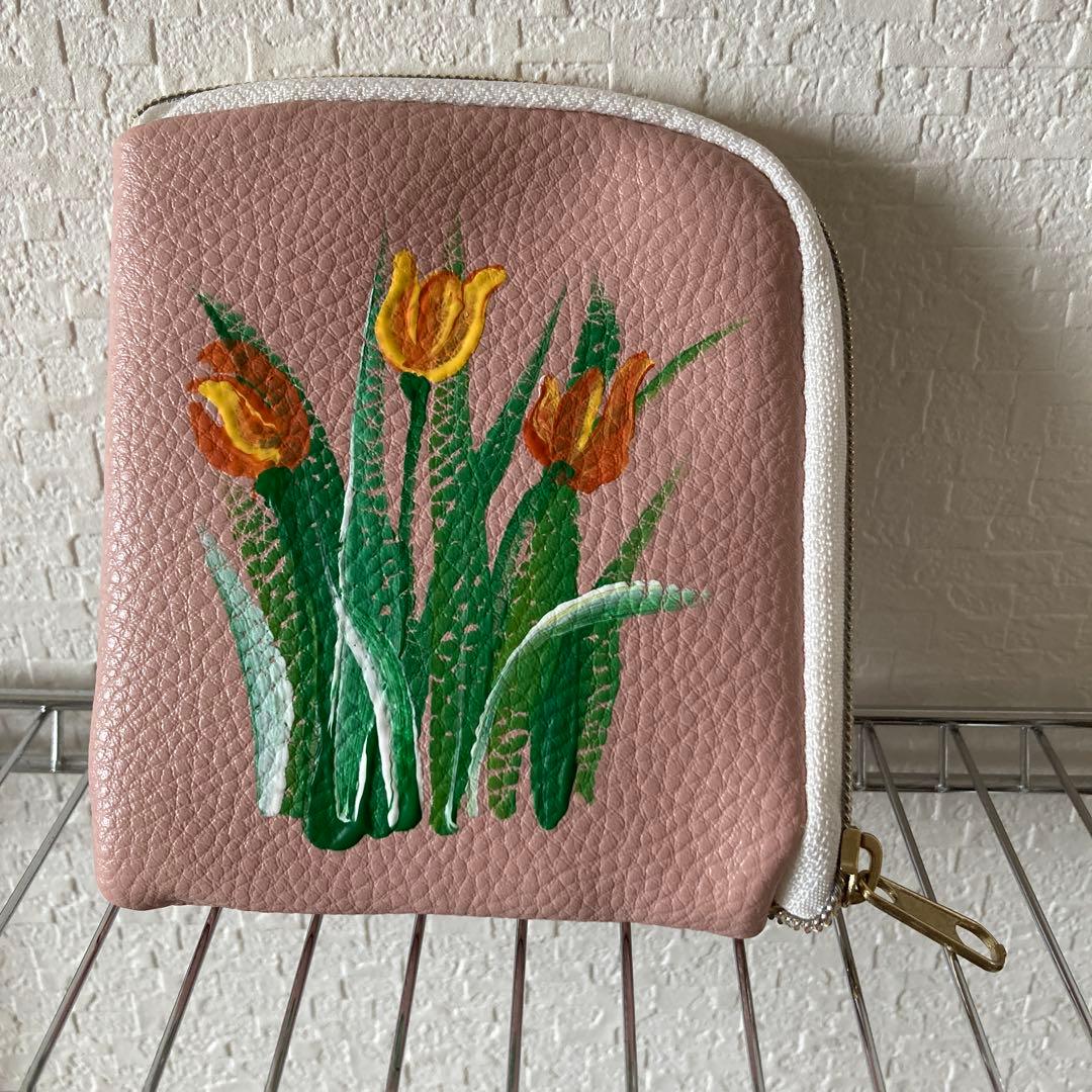 チューリップ柄 ピンク コインケース カードが入るミニ財布
