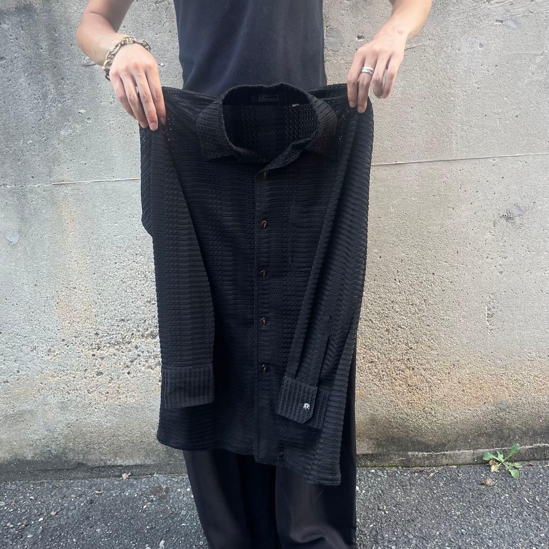 90's テクスチャードシャツ 立体編み ドレス ブラック メッシュ アーカイブ